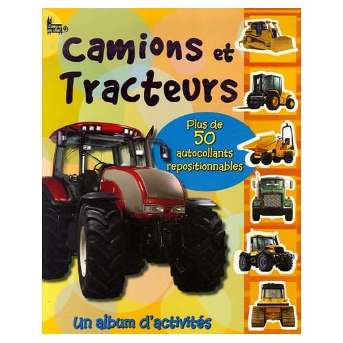 Tout en t'amusant à compléter cet album merveilleusement illustré, tu découvriras pour quels travaux le fermier utilise son tracteur, quels engins on utilise sur les chantiers, comment ils fonctionnent, et bien d'autres choses. Etudie attentivement les détails en gros plan et retrouve de quelles photos ils sont extraits. Plus de 50 autocollants avec des photos en couleur de tracteurs, d'engins de chargement ou de déblayage, ainsi que d'impressionnants poids lourds.Album=12 pages. Tranche d'âges=6 années et plus. Editeur =Langue au chat (12 octobre 2006). Collection =Je découvre... en autocollants. Langue =Français. ISBN-10=2874315915. ISBN-13=978-2874315916. Dimensions du produit=28 x 0,3 x 22,5 cm. Moyenne des commentaires client =4.0 étoiles sur 5 1 commentaire client. Classement des meilleures ventes d'AmazonVoitures, trains et transportsTechniquesSports, arts et création=2.493.092 en Livres (Voir les 100 premiers en Livres) .zg_hrsr { margin: 0; padding: 0; list-style-type: none; } .zg_hrsr_item { margin: 0 0 0 10px; } .zg_hrsr_rank { display: inline-block; width: 80px; text-align: right; } n°307 dans Livres > Livres pour enfants > n°381 dans Livres > Adolescents > Savoir et découverte > n°30418 dans Livres > Adolescents >.Grand livre souple avec plein d'autocollants à placer sur différentes parties des camions et tracteurs. C'est sympa tant que les autocollants ne sont pas placés (il y en a quand même pour un certain temps). Mais une fois le collage terminé, on n'y revient plus beaucoup....
